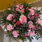 Bouquet de fleurs fraîches dans les tons pastel, réalisé par nos soins dans notre atelier avant d’être livré.
