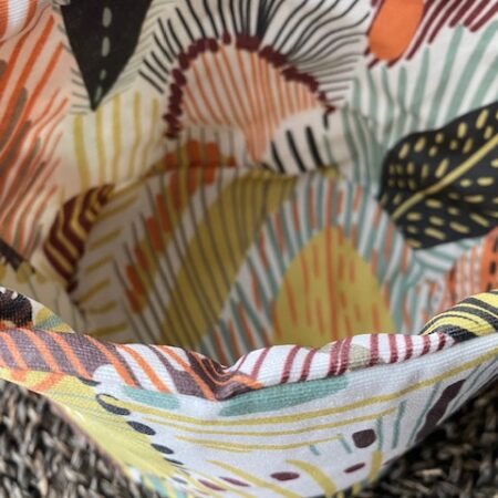 Composition : extérieur (100 % Coton) et intérieur (tissu enduit – enduction acrylique tissu certifié Oeko-tex (50% Coton / 50% Polyester) + tissu imperméable PUL.
